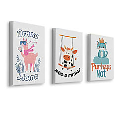 Fast & Furry Set of 3 Gallery Wrapped Canvas by Dancing Littles Jungle - Size 8x10 Inch
