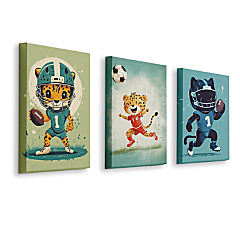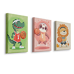 Slam Squad Set of 3 Gallery Wrapped Canvas by Dancing Littles Jungle - Size 8x10 Inch