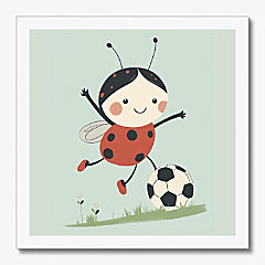 Lila the Scoring Ladybug White Framed Canvas by Dancing Littles Jungle - Size 16x24 Inch