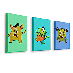 Monster Buddies  Set of 3 Gallery Wrapped Canvas by Dancing Littles Jungle - Size 8x10 Inch
