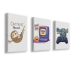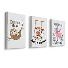 Sloth Life Set of 3 Gallery Wrapped Canvas by Dancing Littles Jungle - Size 8x10 Inch
