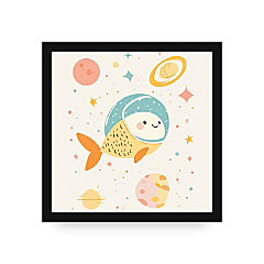 Pisces the Spacefish Black Framed Canvas by Dancing Littles Jungle - Size 16x24 Inch