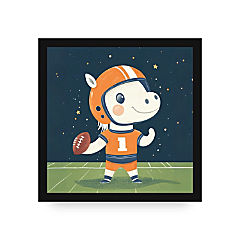 Blaze the End-Zone Bronco Black Framed Canvas by Dancing Littles Jungle - Size 16x24 Inch
