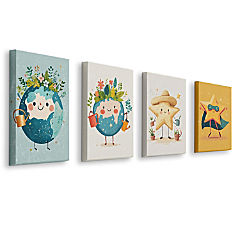 Celestial Garden Set of 4 Gallery Wrapped Canvas by Dancing Littles Jungle - Size 8x10 Inch