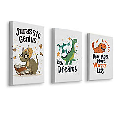 Jurassic Genius Set of 3 Gallery Wrapped Canvas by Dancing Littles Jungle - Size 8x10 Inch