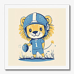 Lucky the Touchdown Lion White Framed Canvas by Dancing Littles Jungle - Size 16x24 Inch