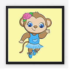 Mackenzie the Monkey Black Framed Canvas by Dancing Littles Jungle - Size 16x24 Inch