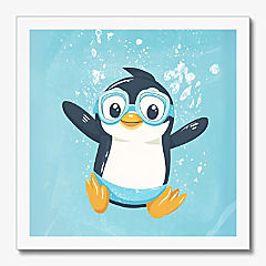 Pippin the Plunging Penguin White Framed Canvas by Dancing Littles Jungle - Size 16x24 Inch