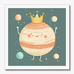 Planet Zeus White Framed Canvas by Dancing Littles Jungle - Size 16x24 Inch