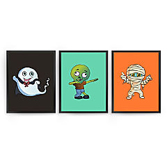 Spooky Squad Set of 3 Black Framed Canvas by Dancing Littles Jungle - Size 16x24 Inch