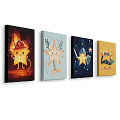 Star Squad Set of 4 Gallery Wrapped Canvas by Dancing Littles Jungle - Size 8x10 Inch
