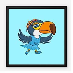 Tess the Toucan Black Framed Canvas by Dancing Littles Jungle - Size 16x24 Inch