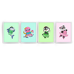 Undersea Adventure Set of 4 White Framed Canvas by Dancing Littles Jungle - Size 16x24 Inch