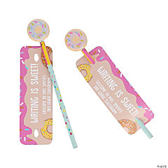 24 Pc. 7 1/2" Donut Party Pencils & Erasers with Personalized Cards for 12