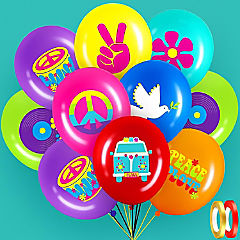 60’s Hippie Theme Party Balloons, Retro Flower Peace Sign Latex Balloons 37 pcs for Groovy Party
