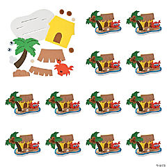 7 1/4" x 5 1/2" 3D Tropical Island Scene with Hut, Palm Tree & Crab Craft Kit – Makes 12