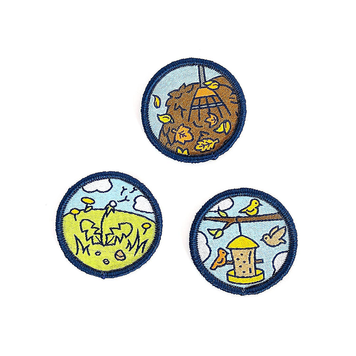 carter joey YARDWORK HELPER PATCHES - COLORFUL EMBROIDERED HOOK AND LOOP PATCHES FOR CHILDREN - Unlock an endless cycle of learning and life experiences. Built on the pillars of education, expert insight, and encouragement to be active, not busy—carter joey patches help your little ones learn new skills, celebrate achievements, and form life-long positive habits. The Yardwork Helper Patches are great incentives for kids to get outside and explore their world! Yardwork Helper activities depicted include: Raking Leaves, Filling a Bird Feeder, and Picking Weeds. This educational toy for 2 year olds and up allows you to bond with your little one and enjoy adventuring together. These embroidered patches are quality and made to be outdoors all day, even in the hands of your little one. The patches are easy for little hands to pull on and off, and the bright and fun designs display your little one's achievement(s).