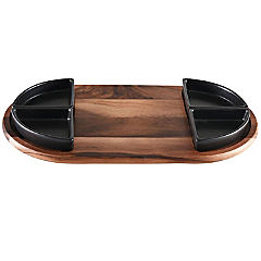 Kalmar Charcuterie/ Serving Tray w/ 4 black triangular ceramic bowls