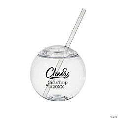 15 oz. Personalized Clear Round Cheers Reusable Plastic Cups with Lids & Straws - 50 Ct.