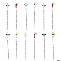 7" Multicolor Cocktail Party Icon Reusable Plastic Straws – 12 Pc.