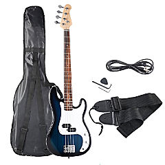 Costway Blue Full Size 4 String Electric Bass Guitar with Strap Guitar Bag Amp Cord