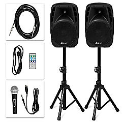 Sonart Dual 10'' Protable 1600W Powered Speakers w/  Mic Speaker Stands Control