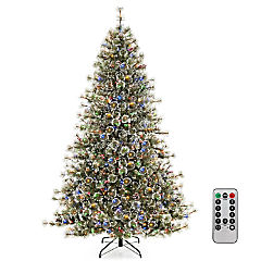 Costway 7 FT Flocked Christmas Tree with 8 Lighting Modes 350 Multi-Color LED Lights