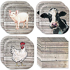 Havercamp Barnyard Party For 24 Guests! Rustic Barnwood Kit Includes 24 Dinner Plates (8 Cow, 8 Pig & 8 Chicken) & 32 Luncheon Napkins!