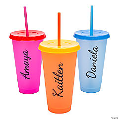 24 oz. Personalized Color-Changing Reusable BPA-Free Plastic Tumblers with Lids & Straws - 6 Ct.