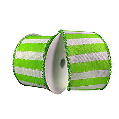 2.5" Stripe Tinsel Edge Ribbon: Lime & White (10 Yards)