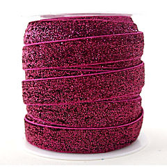 5/8" x 20 Yards Fold Over Elastic Stretch Fuchsia Glitter Trim