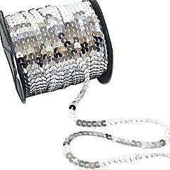 6mm x 100 Yards Silver Flat Metallic Cord Strung Sequin Trim