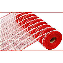 10" Snowdrift Deco Mesh Ribbon: Red Foil & White (10 Yards)