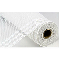 10.5" Border Stripe Metallic Mesh Ribbon: White (10 Yards)