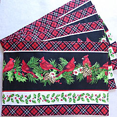 Cardinal Stripe Christmas Placemats Set of 4 Created Handmade and Quilted by Sue