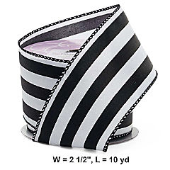2.5 x 10 Vertical Striped Ribbon with Wired Edges - Black/White