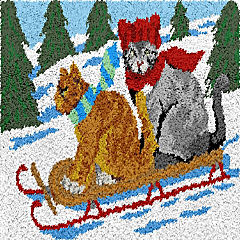 LovelyLust.com Cats Sledding Rug Making Latch Hooking Kit (60x40cm Printed canvas)