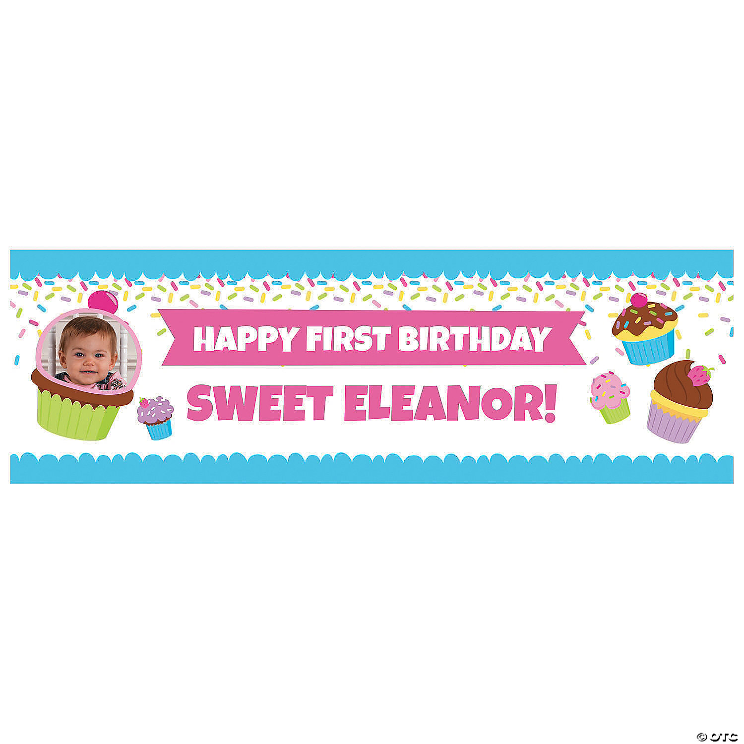 Who doesn't love personalized party decorations? Use this banner to show off the adorable birthday star! This will make a lovely keepsake after the party is done and over. Make your whole theme cupcake related and shop our cupcake party supplies and decorations to really set the scene. Personalize with 2 lines of text and your own photo. Vinyl. 52" x 17" Includes adhesive tabs for hanging. © OTC