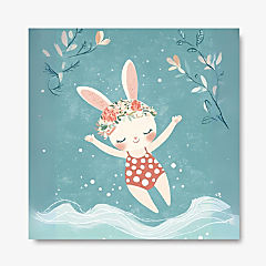 Bonnie the Splashing Bunny Gallery Wrapped Canvas by Dancing Littles Jungle - Size 18x24 Inch