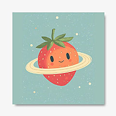 Planet Strawberry Gallery Wrapped Canvas by Dancing Littles Jungle - Size 18x24 Inch