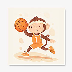 Chip the Dribbling Monkey Gallery Wrapped Canvas by Dancing Littles Jungle - Size 18x24 Inch