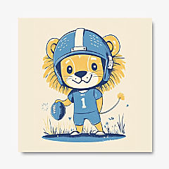Lucky the Touchdown Lion Gallery Wrapped Canvas by Dancing Littles Jungle - Size 18x24 Inch