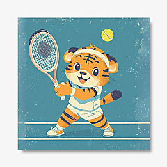 Tatum the Topspin Tiger Gallery Wrapped Canvas by Dancing Littles Jungle - Size 18x24 Inch