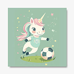 Uma the Soccer Unicorn Gallery Wrapped Canvas by Dancing Littles Jungle - Size 18x24 Inch