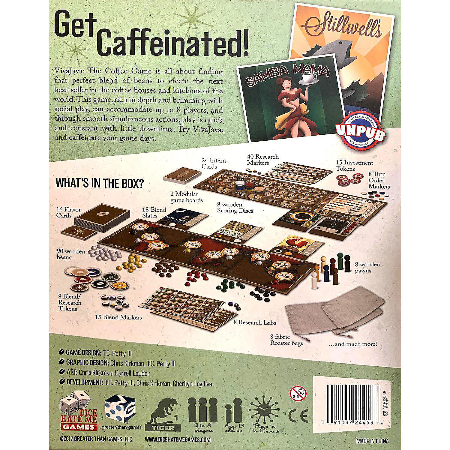 Vivajava: The Coffee Game Is All About Finding That Perfect Blend Of Beans To Create The Next Best-Seller In The Coffee Houses And Kitchens Of The World. In The Game, Players Send Their Researchers To Hot Spots Around The Globe To Gather The Perfect Bean. This May Bring Them Into Contact With Other Players Who Are Also On The Hunt, Creating A Crucial Choice: Go It Alone And Continue To Research, Or Join Forces With That Opponent, Hoping To Combine Beans From Both Player'S Bags And Share The Score With A Superblend. Going It Alone With Research Can Often Prove Useful As Players Spend Time In The Lab Developing Abilities That Grant Them An Advantage. However, In Vivajava The Bold Taste Of Victory Will Go Only To Those Players Who Are Able To Balance Solitary Research With Cooperation Amongst Their Fellow Gamers. The Rich Depth Of Varying Strategies And Social Play Will Satisfy Most Players' Thirst For Unique Gameplay, But Vivajava Has Even More Brewing. This Flexible Game Can Accommodate Up To 8 Players, And Through Smooth Simultaneous Actions, Play Is Quick And Constant With Little Downtime.