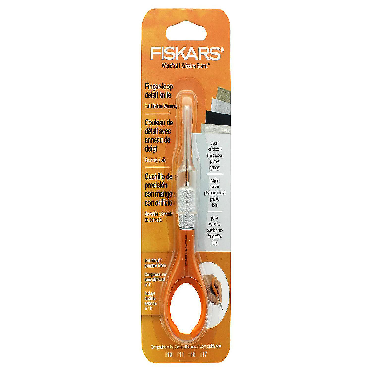 F i s k a r s F i n g e r L o o p D e t a i l K n i f e - T h e e r g o n o m i c s h a p e a n d S o f t G r i p t e c h n o l o g y o n t h e b a r r e l p r o v i d e s m a x i m u m c o m f o r t a n d c o n t r o l . T h i s f i n g e r t i p k n i f e c u t s w h e r e v e r y o u r f i n g e r p o i n t s . C o m e s w i t h a s a f e t y c o v e r f o r t h e b l a d e a n d a c a p f o r a d d e d p r o t e c t i o n . U s e s s t a n d a r d # 1 1 b l a d e s .