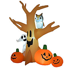 Edge Collections - 7.5' - Brown - Lighted Inflatable Halloween Tree with Owl, Ghost, and Pumpkins!