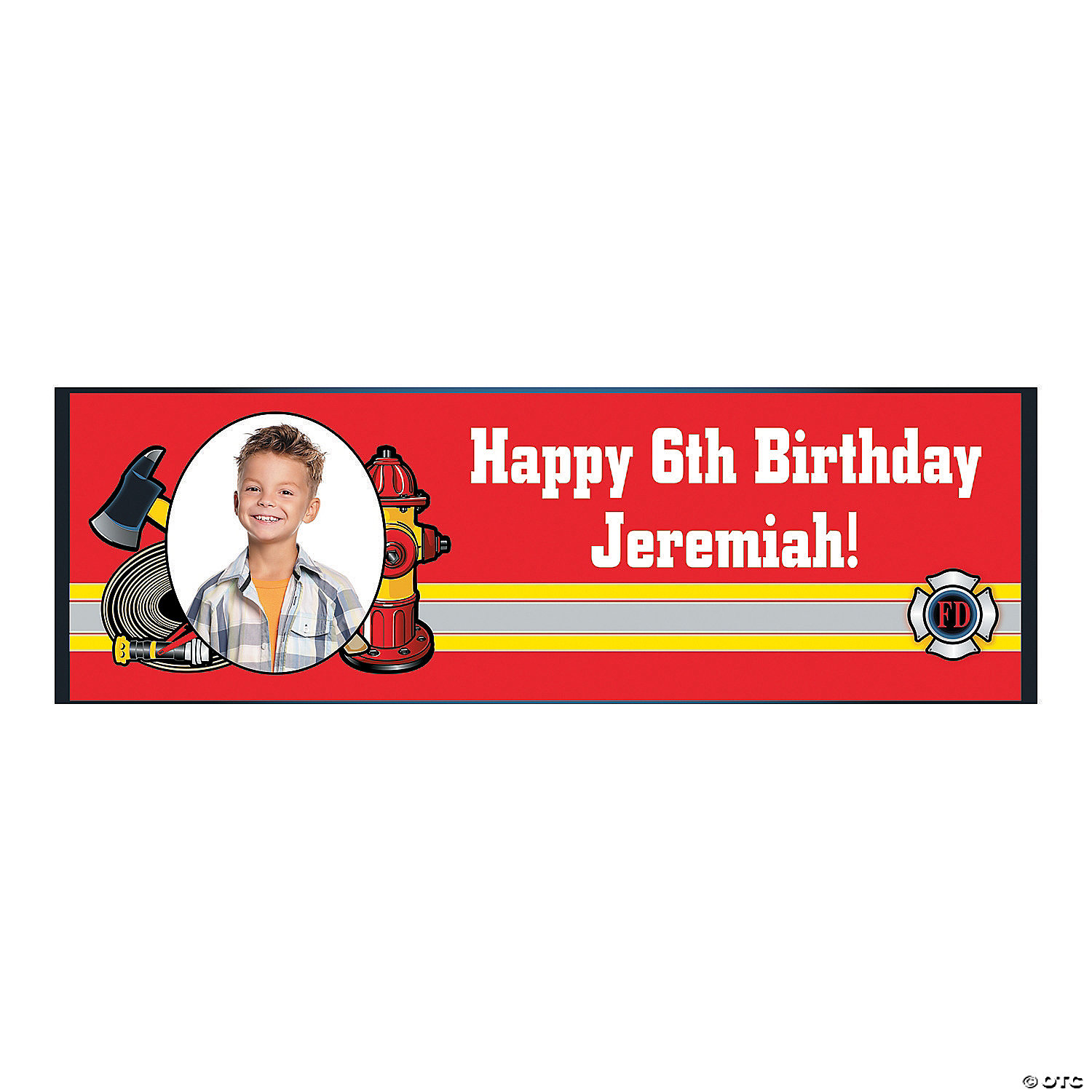 Heat up the party with this fun vinyl Firefighter Party Custom Photo Banner. A must-have birthday party accessory for any future firefighter, hang this durable banner on your porch or in a doorway for the perfect touch. Upload your own photo and customize with up to 2 lines of text: 20 characters/spaces on the 1st line and 18 characters/spaces on the 2nd line to make your youngster feel super-special. Includes adhesive tabs for hanging. © OTC