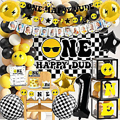 One Happy Dude 1St Birthday Party Decorations Party Supplies First Birthday Party Decoration For Boy Black And Yellow Theme Backdrop Balloon High Chair Banner