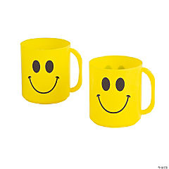 Retro Smile Face BPA-Free Plastic Cups with Handle - 12 Ct.